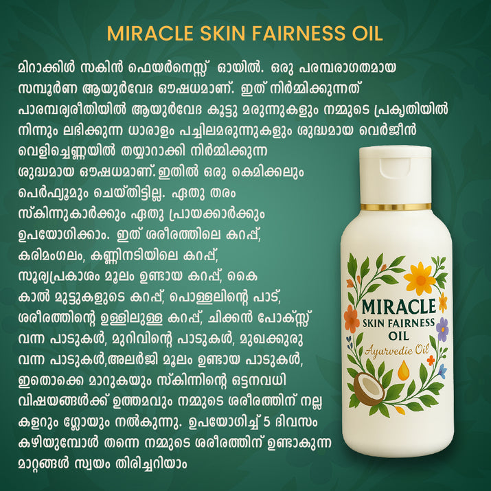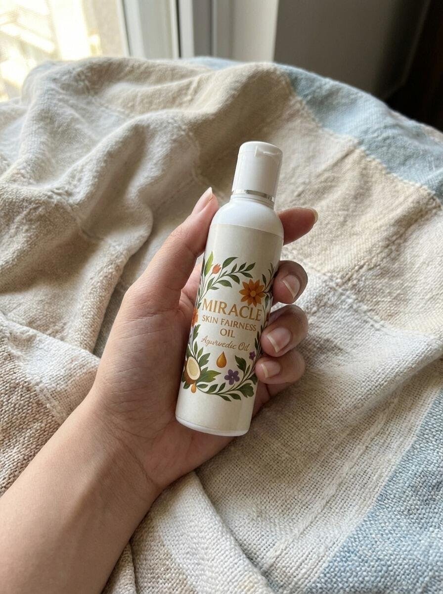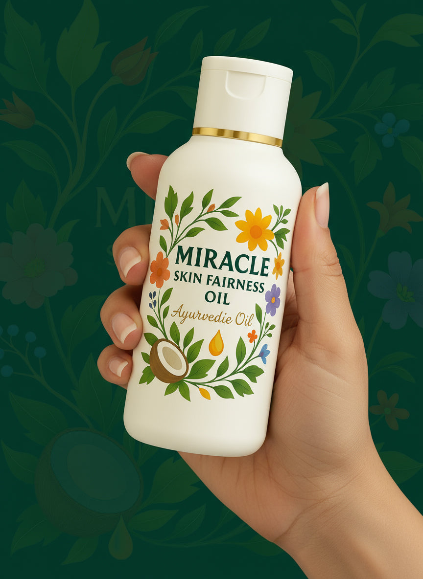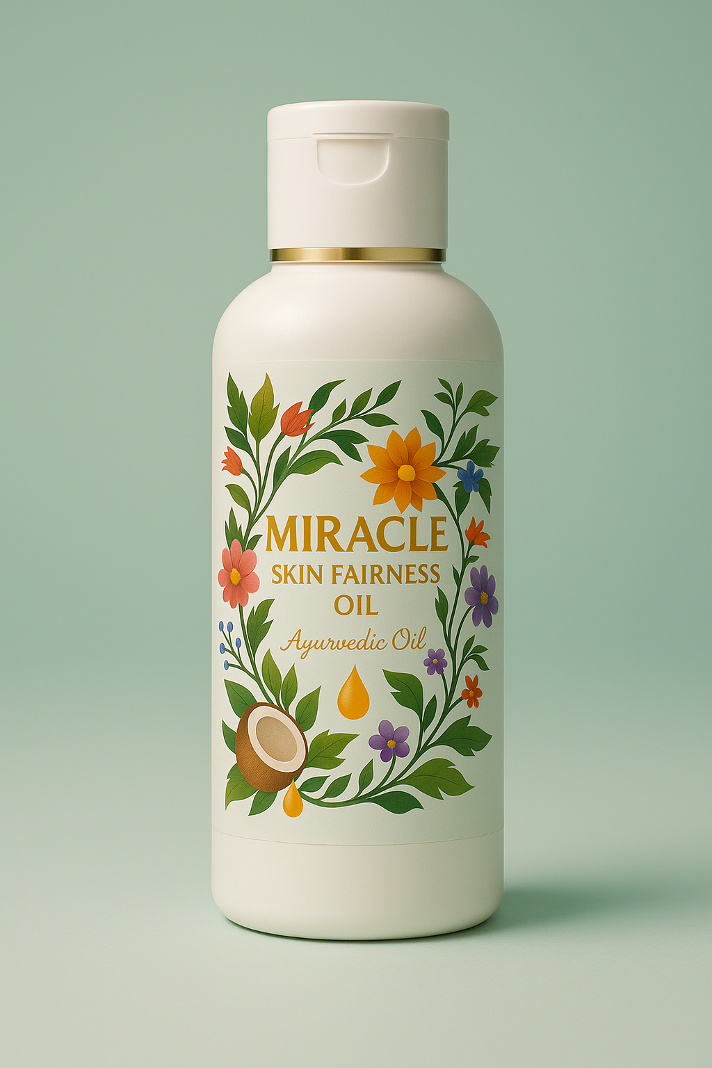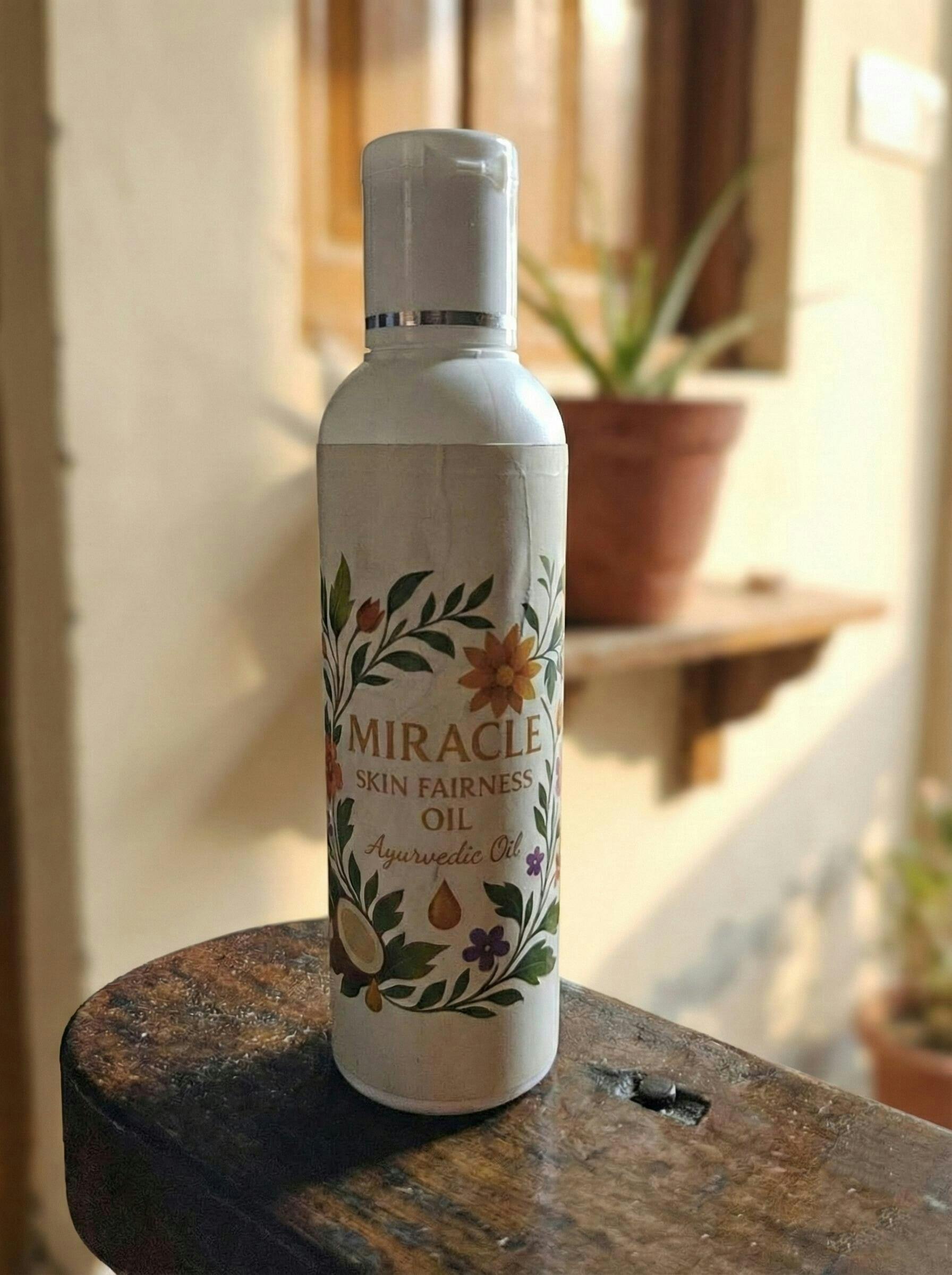 Reveal your skin’s true brilliance with our Miracle Skin Fairness Oil, expertly blended to lighten pigmentation, fade tan lines, and restore your natural glow with every drop. Experience timeless beauty, the Ayurvedic way.